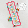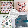This 4-1/2in Hexie cuts four different shapes, all from strips, and all easy to follow. Shapes include a 4-1/2in hexagon, a 4-1/2in half hexagon, a 2-1/2in triangle, and a 2-1/2in diamond shape.