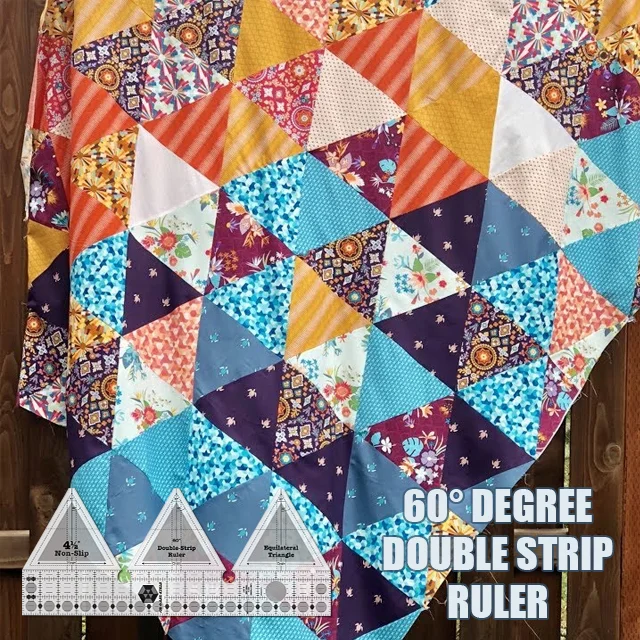 Turn-a-Round the ruler to cut five 60 degree triangles that finish 4 inches. Multiple layers can be cut at one time.