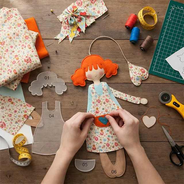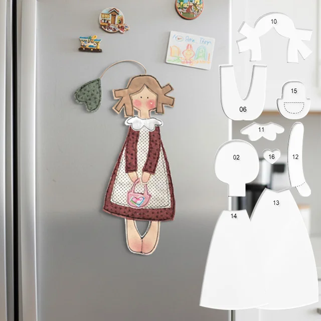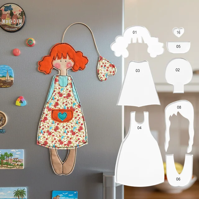 [Adorable Overload! DIY Doll Ornaments: Weld Gentleness to Your Refrigerator] Who can resist soft, fluffy fabric dolls? This red-haired sweet girl doll patchwork is made by hand, with a floral apron and heart-shaped pocket that exude a comforting charm. Even the little hanging bag is aesthetically pleasing! Simply sew the pre-cut fabric pieces; even beginners can easily achieve this cuteness. Hang it on the refrigerator to store small items—even cooking becomes sweeter! 🍯