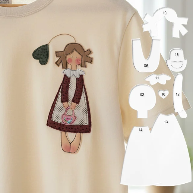 [T-Shirt Savior! Sew Adorable Dolls onto Your Clothes] Transform a basic style into a limited edition! This red-haired doll fabric patch comes with a built-in floral apron; even beginners can sew it from pre-cut fabric pieces. Attach it to a T-shirt or sweatshirt for an instant cuteness boost; each garment will have its own unique gentleness.
