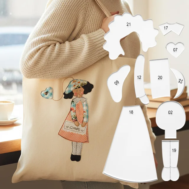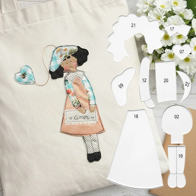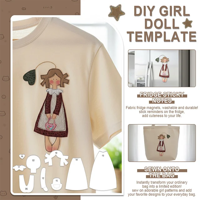 [Even Those with No Crafting Skills Can Save Their Bags! Doll Fabric Patch Kit] No fabric cutting required! Ready-made templates for direct sewing; add retro dolls and heart charms to your canvas bag, and instantly transform a plain bag into a unique design! Even beginners can complete this in 10 minutes, easily capturing the handmade feel, ensuring your bag is unlike any other!