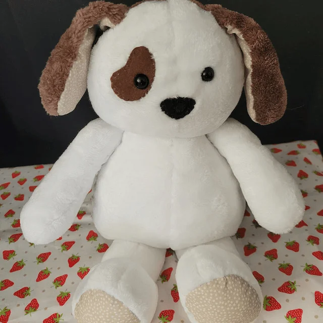 Little Scruff is a sweet little puppy who loves to snuggle and wag his tail. Little Scruff can be made with most types of fabric, but works well when made with plush/fleece fabrics or specialty clothing to make an adorable keepsake.