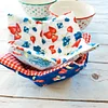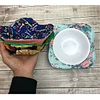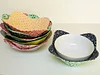 Only 100% cotton, non-metallic fabric, batting and thread, should be used if you intend to put these in the microwave. Other materials could catch fire. Works great for ice cream bowls too! Keep your hands warm while enjoying your favorite flavor.
