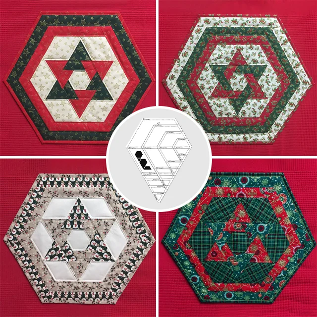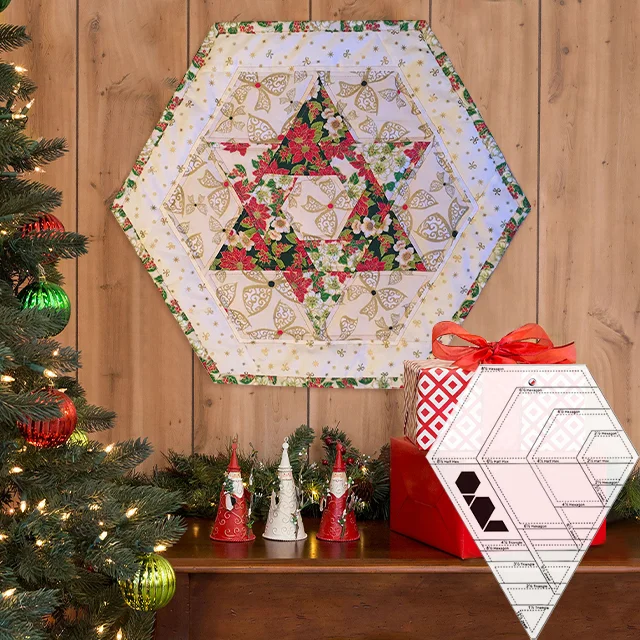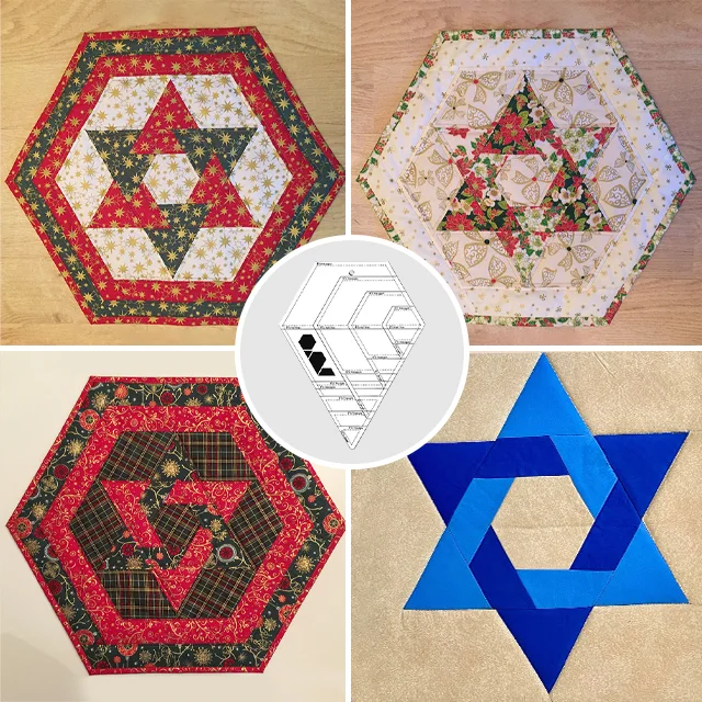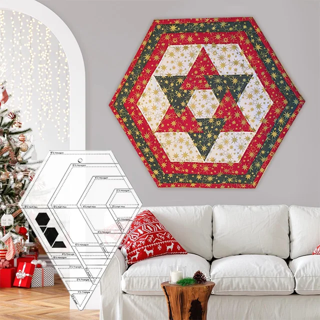 Patchwork ruler for easy stitching to hexagons. Hexagon size 2.5 ", 4.5", 65 "and 8.5" inch. In the PlayList you will find the procedure for sewing hexagons on a sewing machine. Variant CLEAR / NEON. MiniHexagon in the Related section, at the bottom of the page.