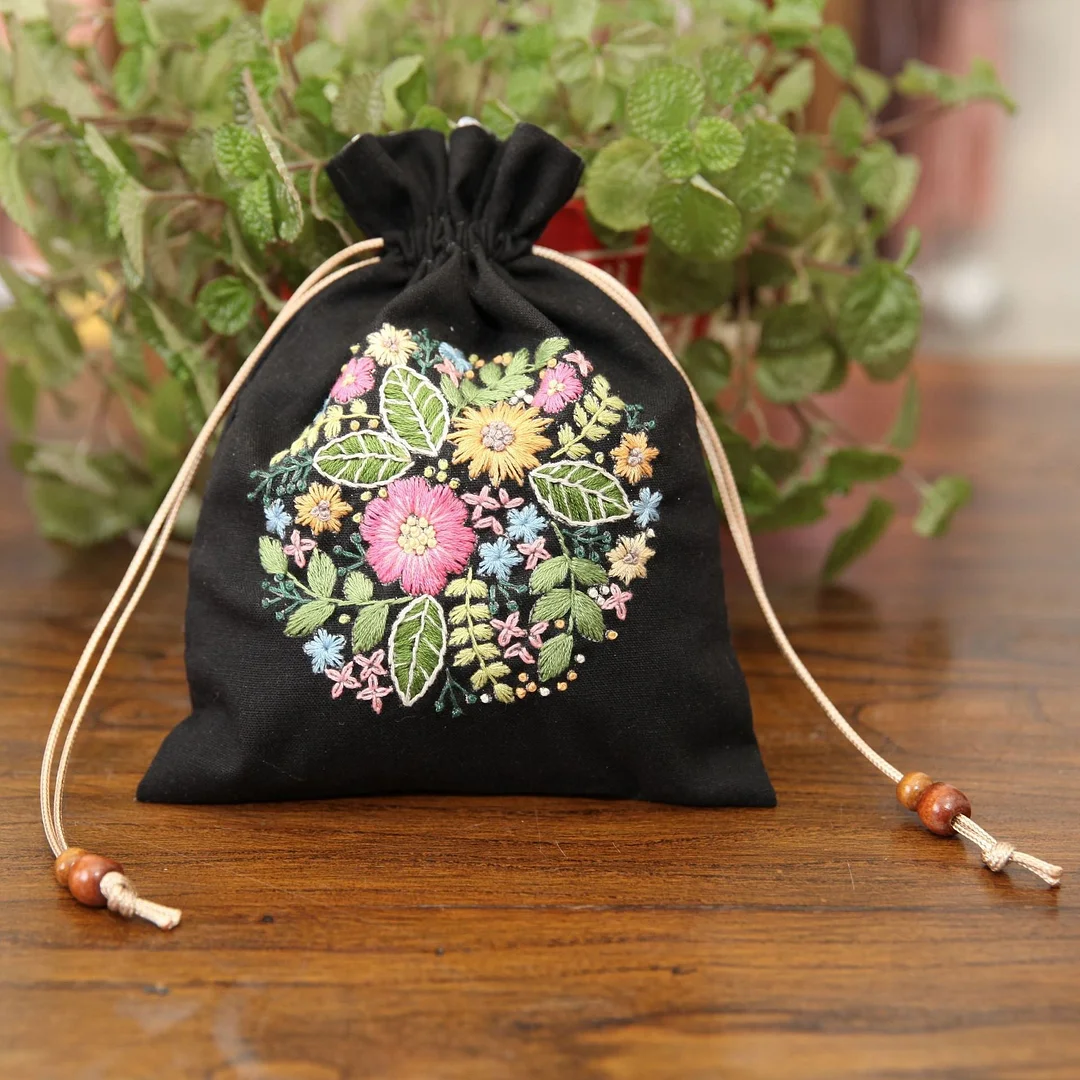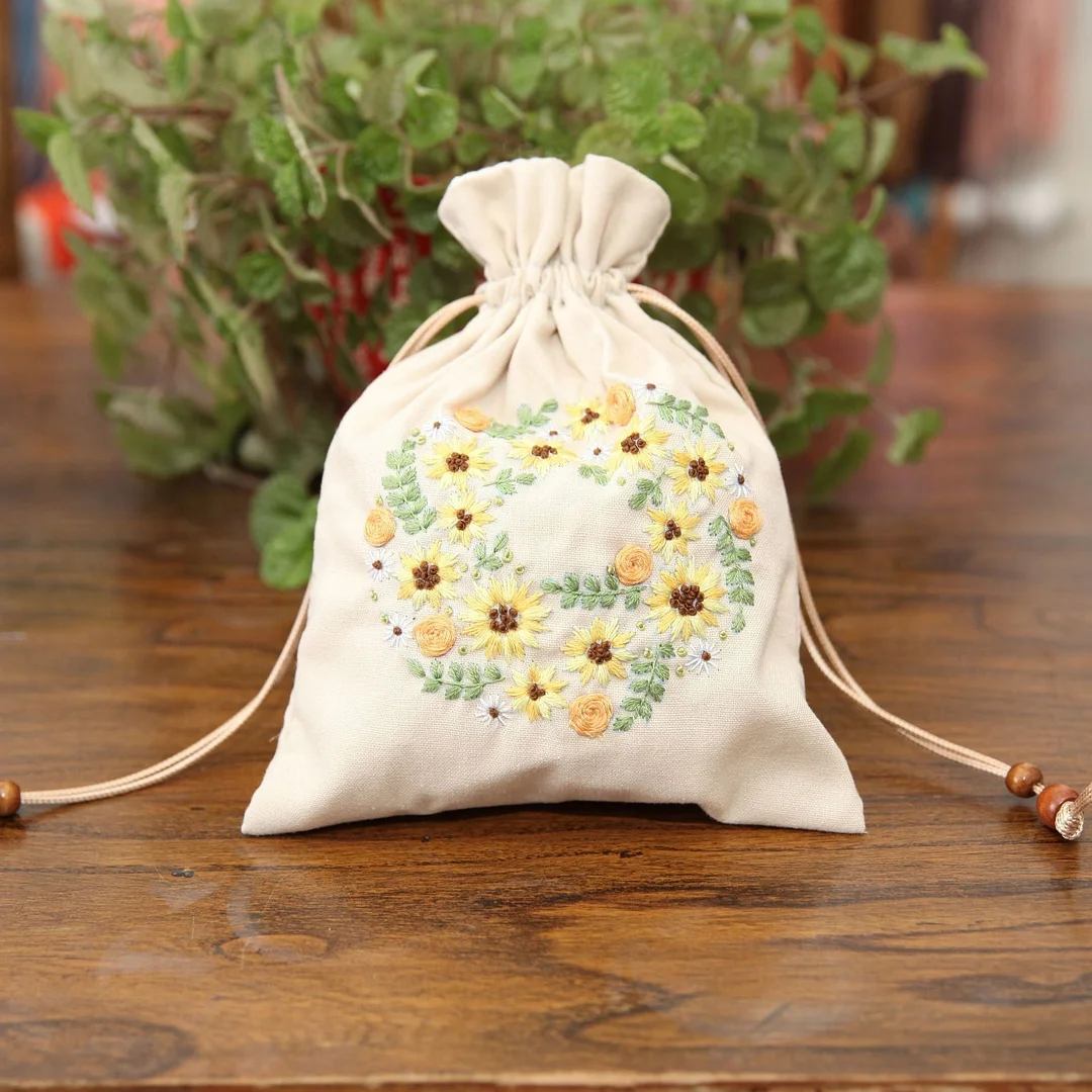 You will have hours of fun with this Sachet Bag Embroidery Art Kit. After finishing the embroidery bag, It can be used for daily grocery bags, travel bags, stationery bags, etc.