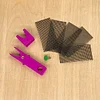 This sanding harp is a tool designed for work with clay. When used on leatherhard clay, it can help shape and smooth down sharp corners and edges. The tool itself is 3D printed with a mesh screen. The mesh is made from window screen.